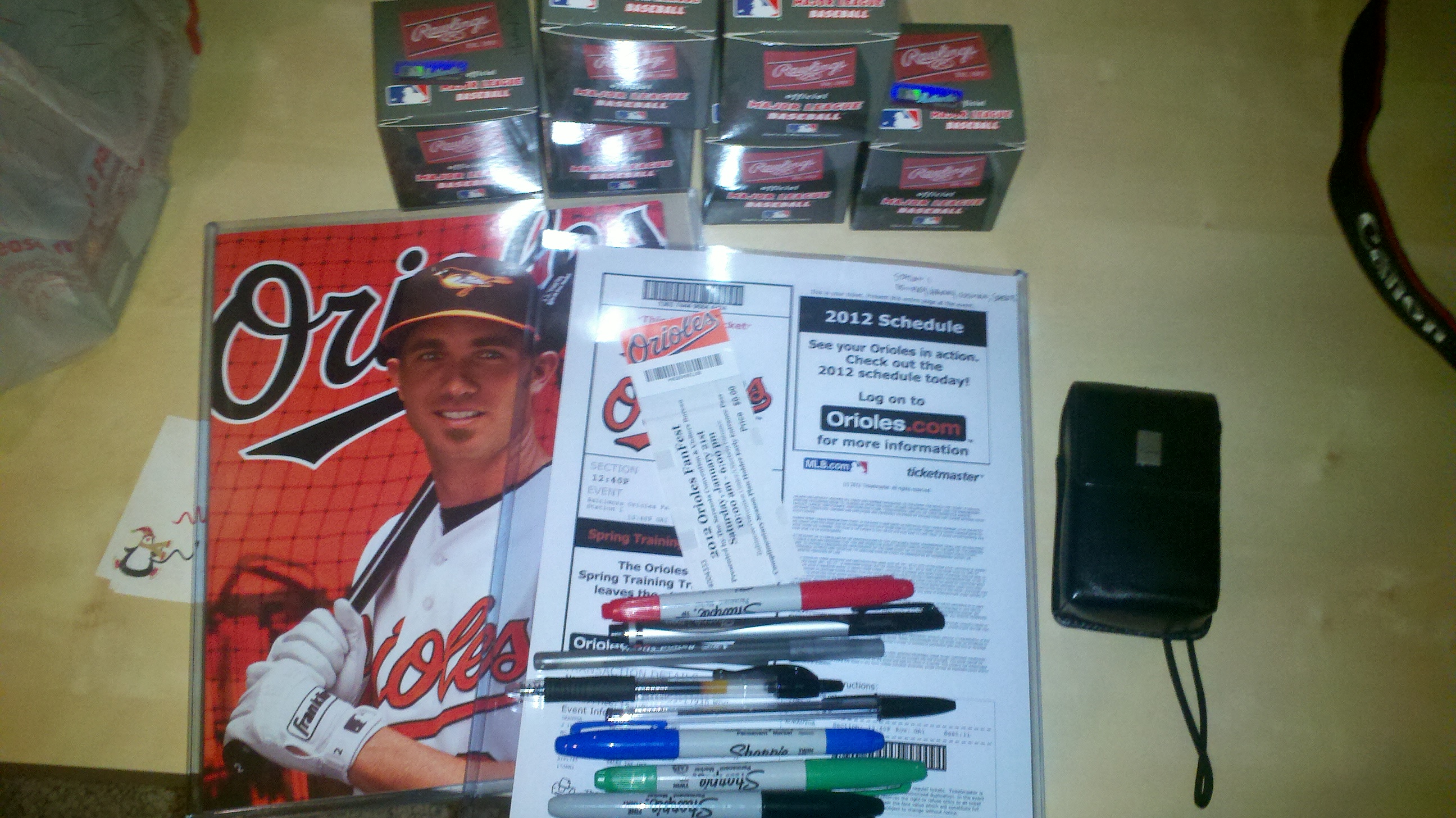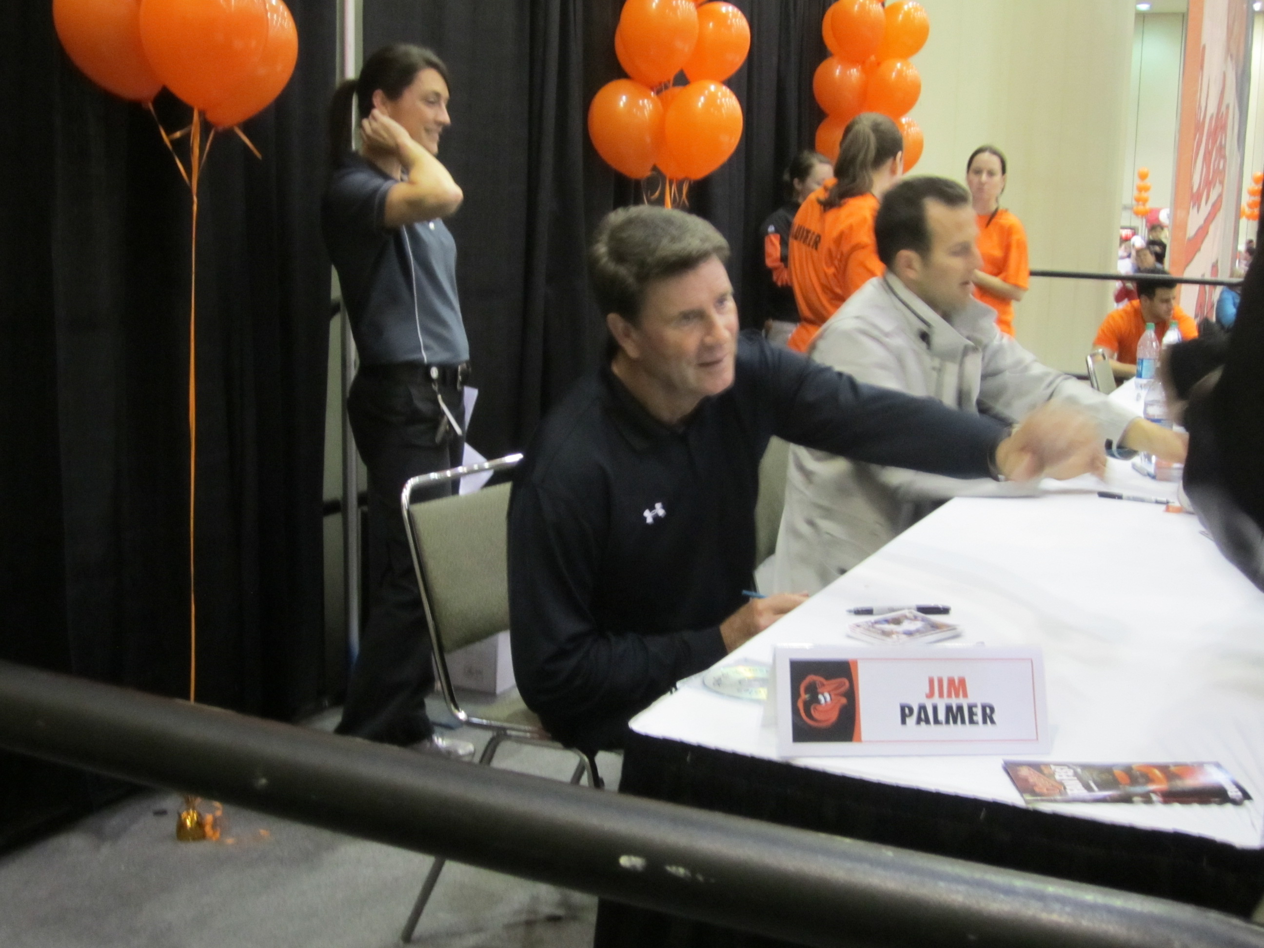 from there i swung into the giveaways area. this was alot better run this year than last. last year the line wound through the middle of fanfest. early on they had brian matusz bobbleheads and orioles magazines featuring matt wieters. later i saw some camo floppy hats. i already had a few from the season. after that i wondered through the main area and listened to some of the panel sessions. after that and wondering around, i got in line for my autograph sessions. last year, when they signed JJ Hardy, i became a big fan of his. he’s my style of player and definitely one this team needs so i wanted to get his autograph. at that station was reimold, hardy, larry sheets, and rick dempsey. i asked rick when he was putting out his next CD. he wasn’t sure yet, LOL.