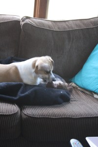 we got off to a little of a rough start because lucy hadn’t been away from her parents for an extended period of time and it took the better part of a day to get used to use and not being home. usually they had someone watch her at their house so it was a new environment for her. the first night, she was up and down most of the night and didn’t sleep much, but once she settled in, she was great. she followed us everywhere and wanted to play consistently like most little high energy dogs.